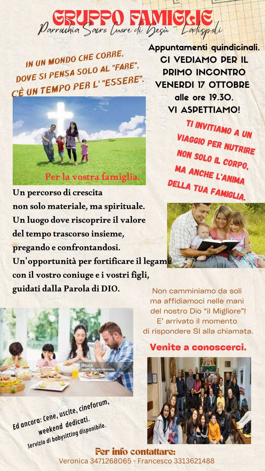 ![]() | PASTORALE della FAMIGLIA In un mondo che corre...dove si pensa solo al "fare"... c'è un tempo per L'ESSERE. Riparte il gruppo famiglie... vi aspettiamo Venerdì 17 ottobre ore 19.30, sala parrocchiale, via Fiordalisi 14. |