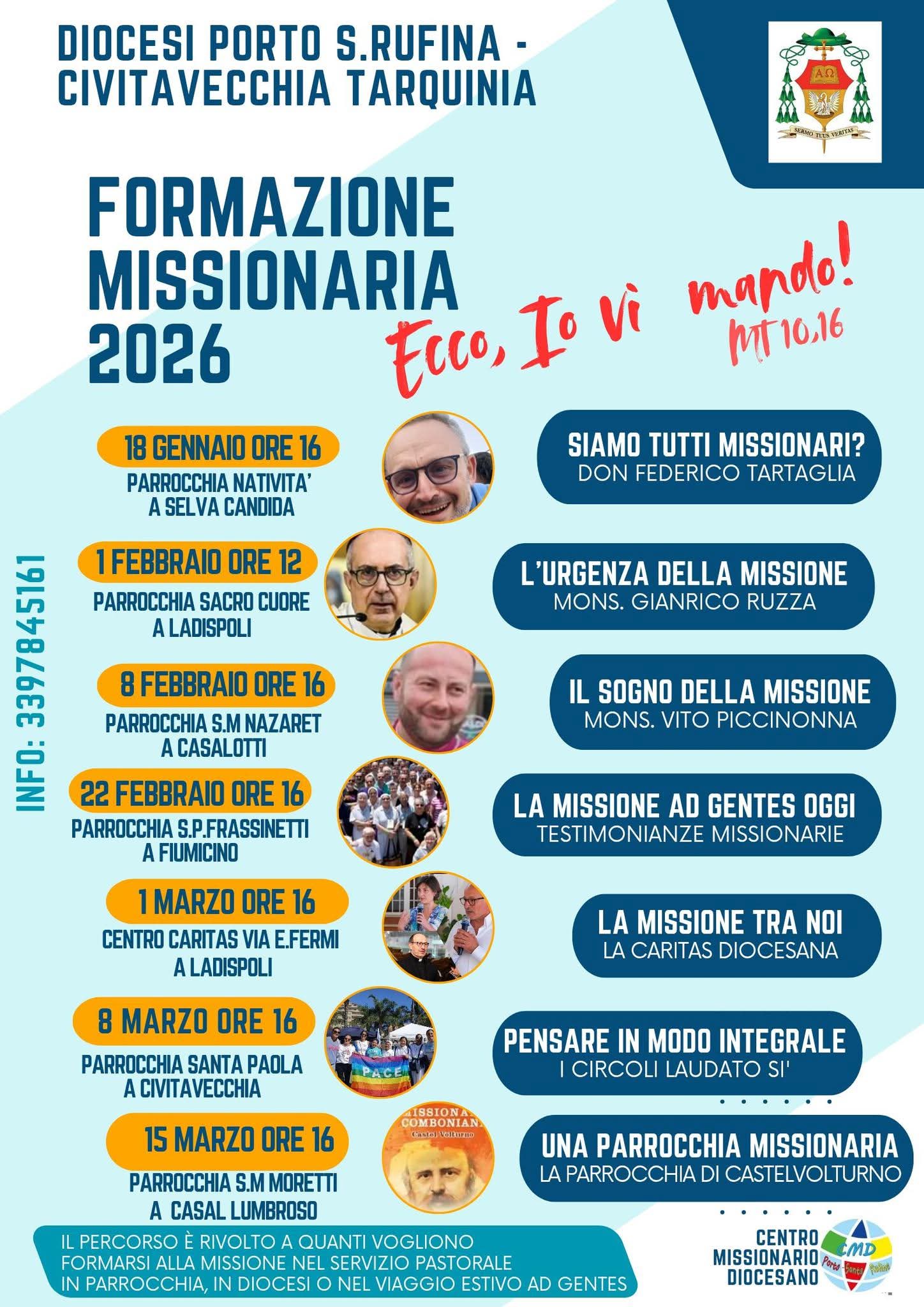![]() | AVVISO CAMBIO ORARIO FORMAZIONE MISSIONARIA 2026 Domenica 01 Febrbaio ore 15.00-17.30 (NON ore 12!!!) alla Parrocchia Sacro Cuore di Gesù - Ladispoli |