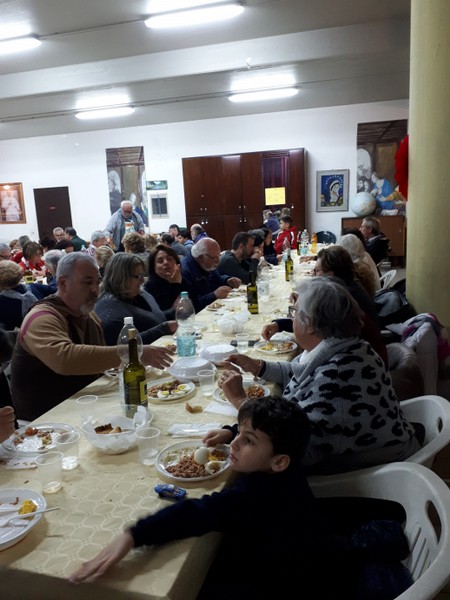 Incontro festoso tra animatori della Caritas parrocchiale, volontari e parrocchiani che hanno contributito ad AIUTARE la Caritas ad AIUTARE i più bidognosi con il loro contributo alla cena.