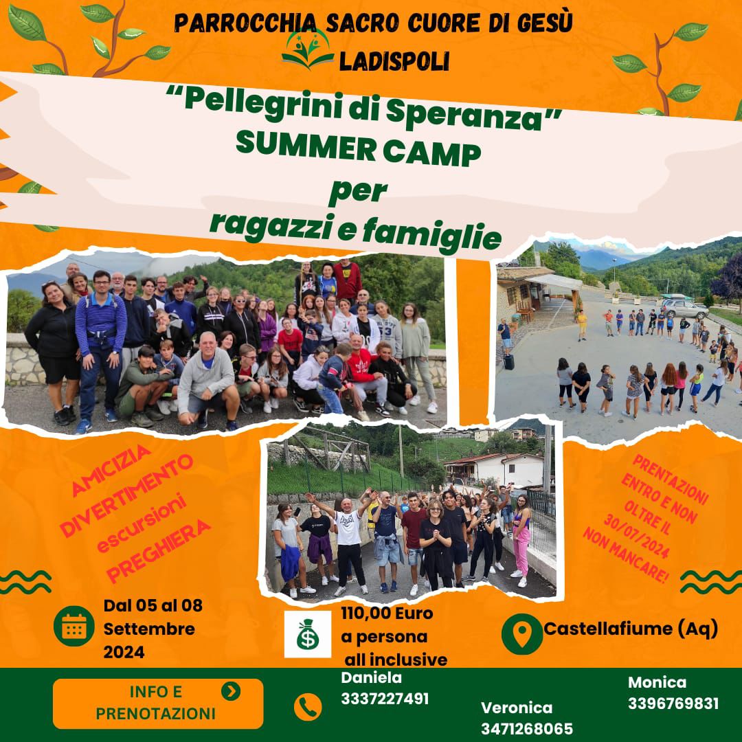 ![]() | SUMMER CAMP 2024 - GIOVANI E FAMIGLIE Dal 5 al 8 Settembre si terrà SUMMER CAMP 2024 aperto ai ragazzi e alle famiglie. Giochi relax momenti di condivisione per giovani e famiglie. Per eventuali informazioni e chiarimenti sono presenti i numeri delle referenti nella locandina. Vi aspettiamo in tanti per trascorrere giorni di gioia e divertimento!!! Clicca qui per la locandina e modulo iscrizione |